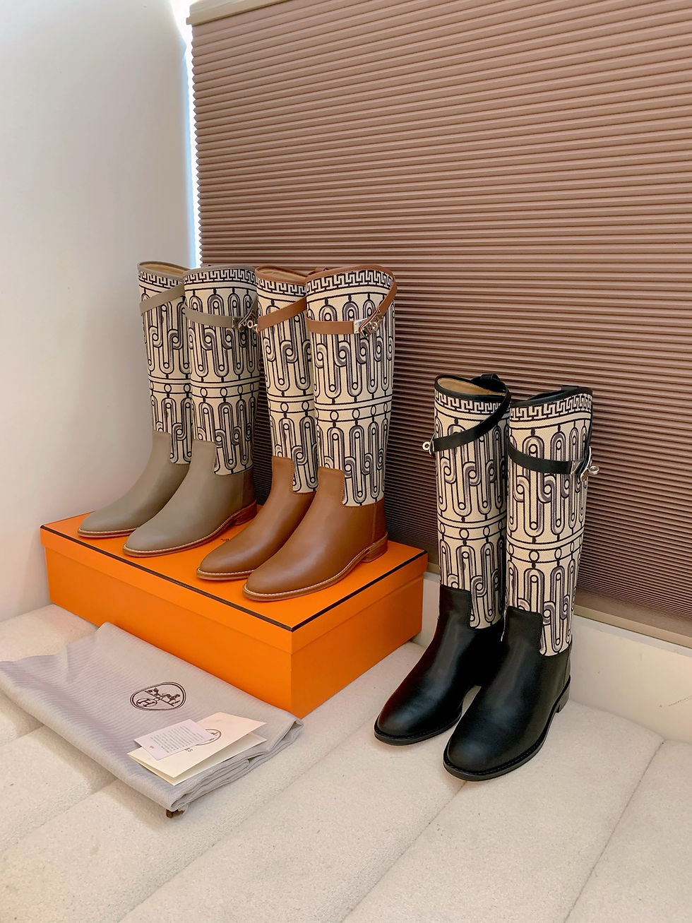 HERMES JUMPING KELLY BOOTS WITH PATTERNED CANVAS