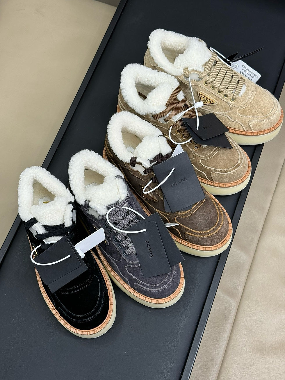PRADA SUEDE SHEARLING BOOTS SHOES